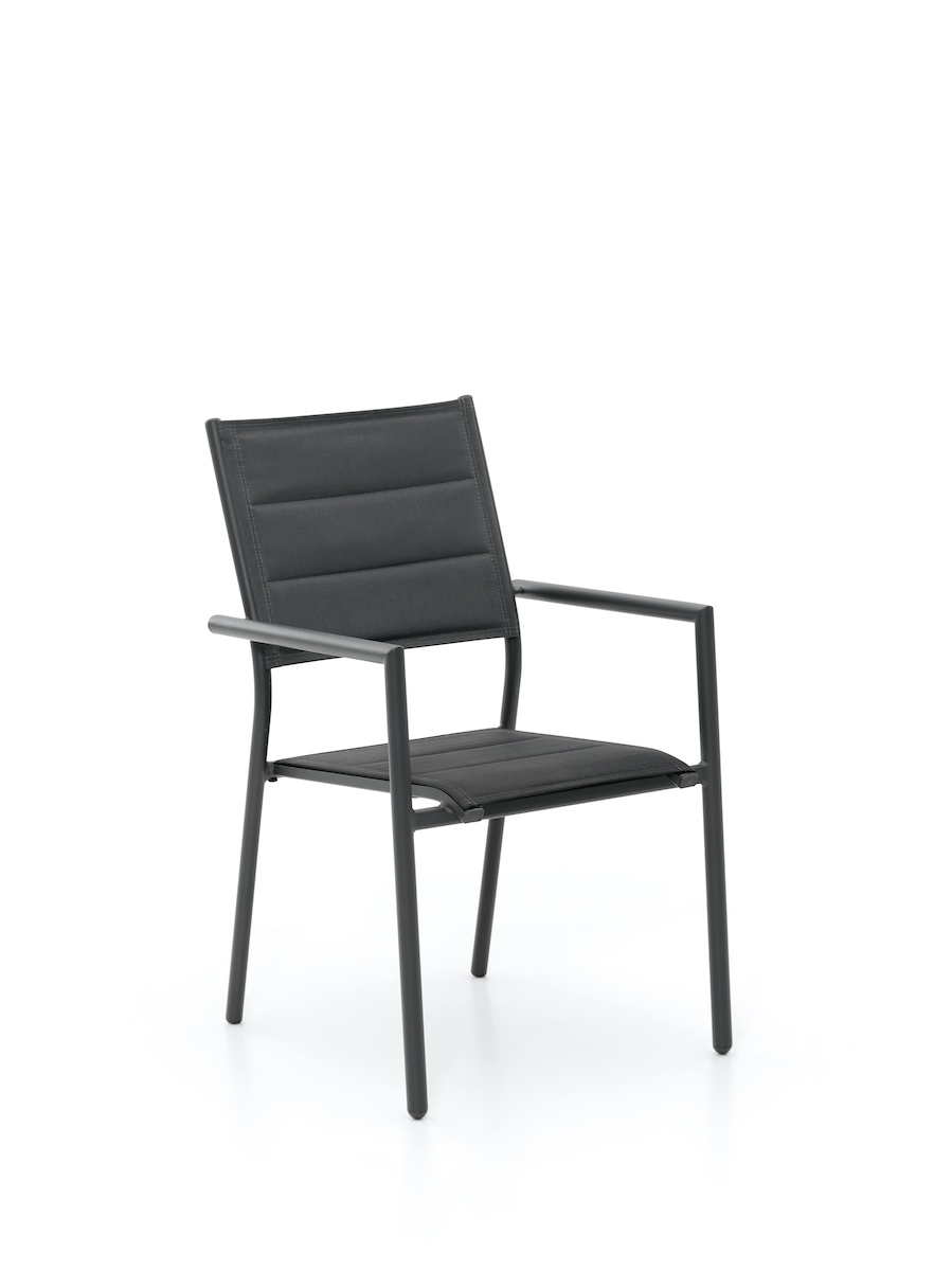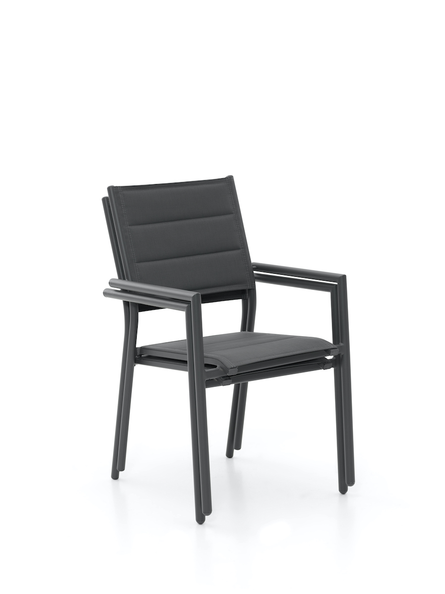 Maximálny komfort za minimálnu cenu. Takto by sa dala v skratke definovať pohodlná čalúnená stolička Baden s hliníkovou konštrukciou, ktorú pri jej váhe dokážete aj nadránom bez problémov nastohovať na seba a odložiť mimo terasy.