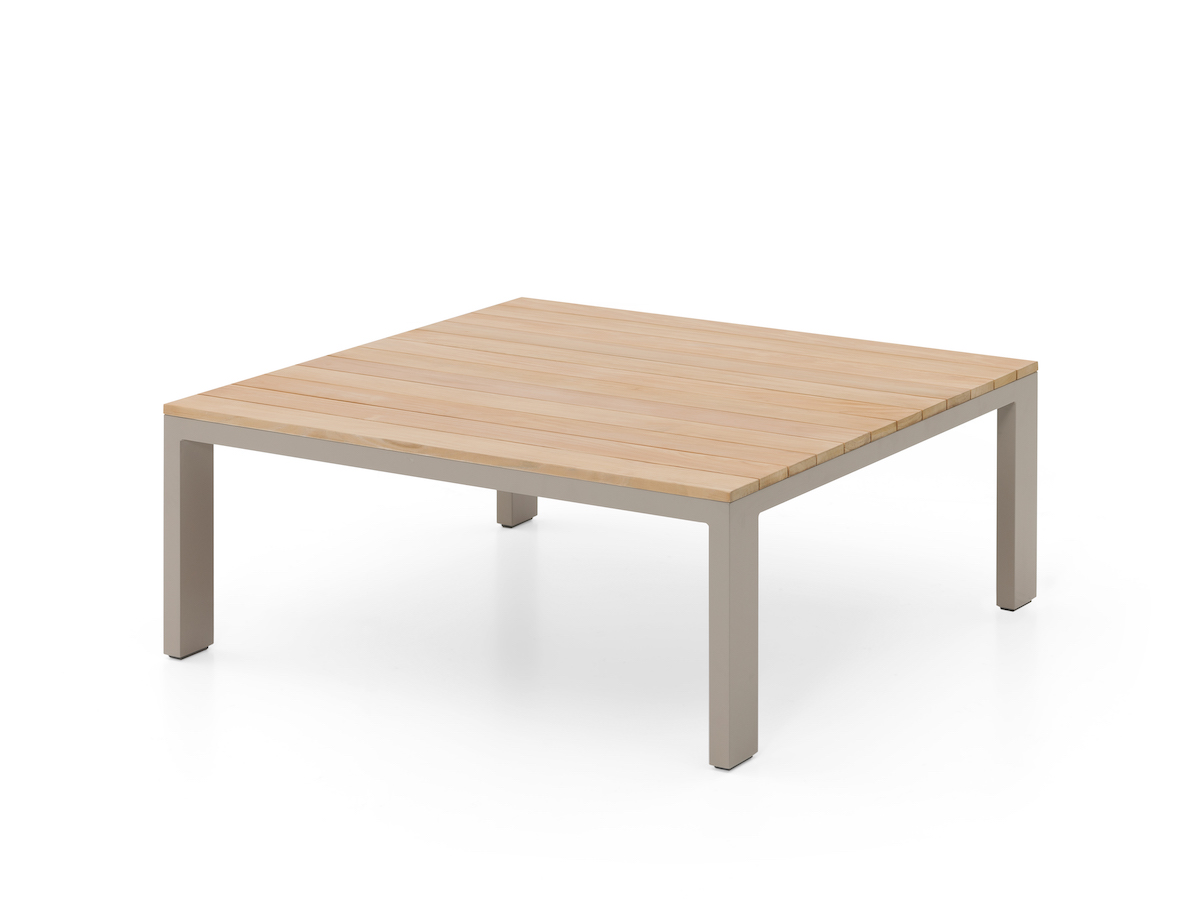 Exkluzívny konferenčný stolík s hliníkovou konštrukciou a povrchom z teakového dreva je tu.