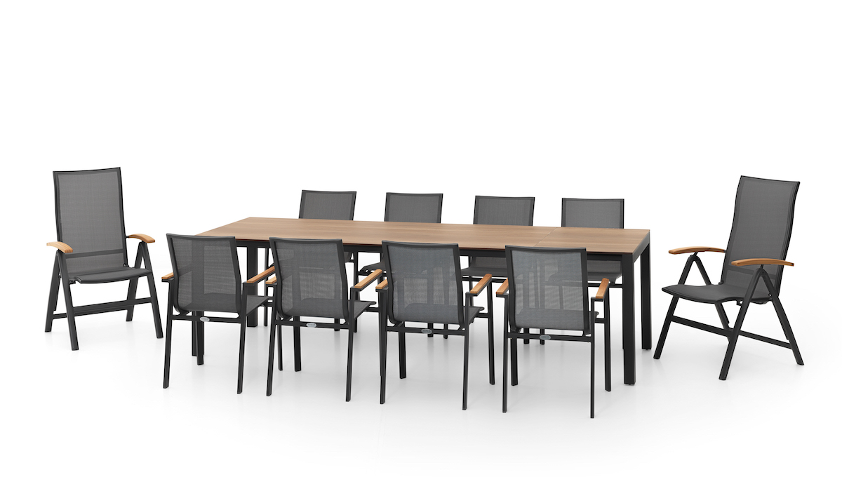 Žiadna starostlivosť o rozťahovací stôl z neho robí ideálny doplnok terasy.