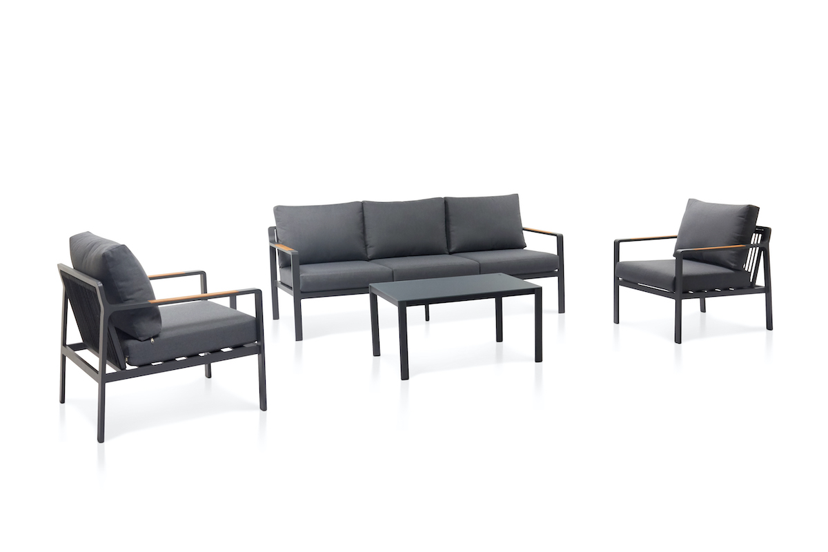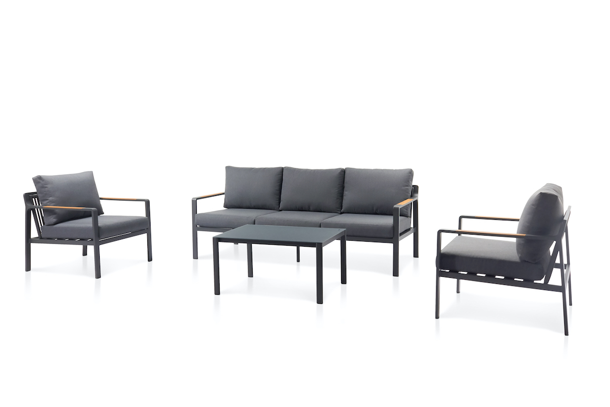 Trojmiestna pohovka Salzkammergut s podrúčkami z teakového dreva: