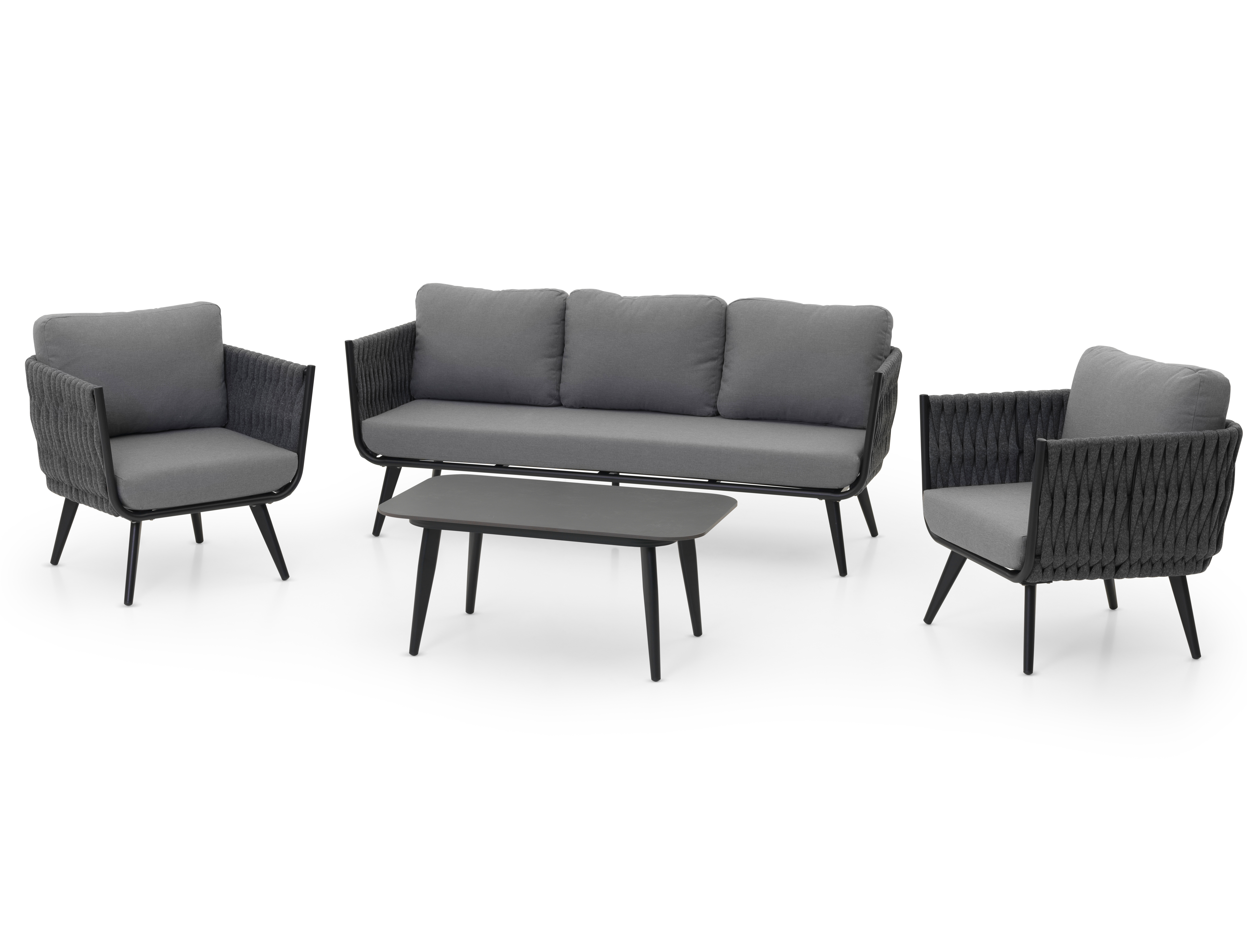Set pozostáva z trojpohovky, dvoch kresiel a konferenčného stolíka, ktoré vytvárajú ideálne miesto pre relaxáciu a spoločenské chvíle. Perfektné na posedenie s drinkom počas letných večerov, alebo ako chill out zóna v podniku.